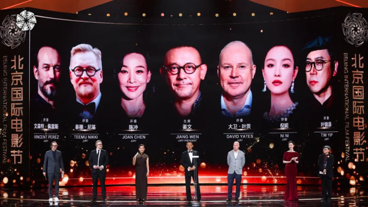 闭幕当晚,在国际评委会主席姜文的引领下,陈冲、大卫·叶茨、倪妮、泰穆·尼基、文森特·佩雷斯、叶锦添七位“天坛奖”评委集体亮相。他们的身影,不仅见证了本届影展的专业与权威,更象征着中外电影人共同守望影像艺术的深情与承诺。一段精心剪辑的入围影片巡礼短片,在大屏幕上缓缓展开。不同文化与风格的光影语言在此交汇,铺展出一幅斑斓多元的世界影像长卷。