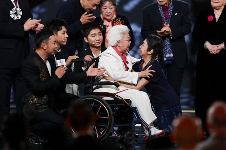 中央戏剧学院表演系的青年学生作为新一代影人代表登台,五位曾担任八一电影制片厂演员剧团团长的表演艺术家——陶玉玲、金鑫、祝新运、赵晓明、刘之冰,齐聚一堂,共同向“老团长”田华致以最深情的敬礼。在《党的女儿》饰演田华女儿的扮演者演员沈竞华作为惊喜嘉宾温暖致敬。